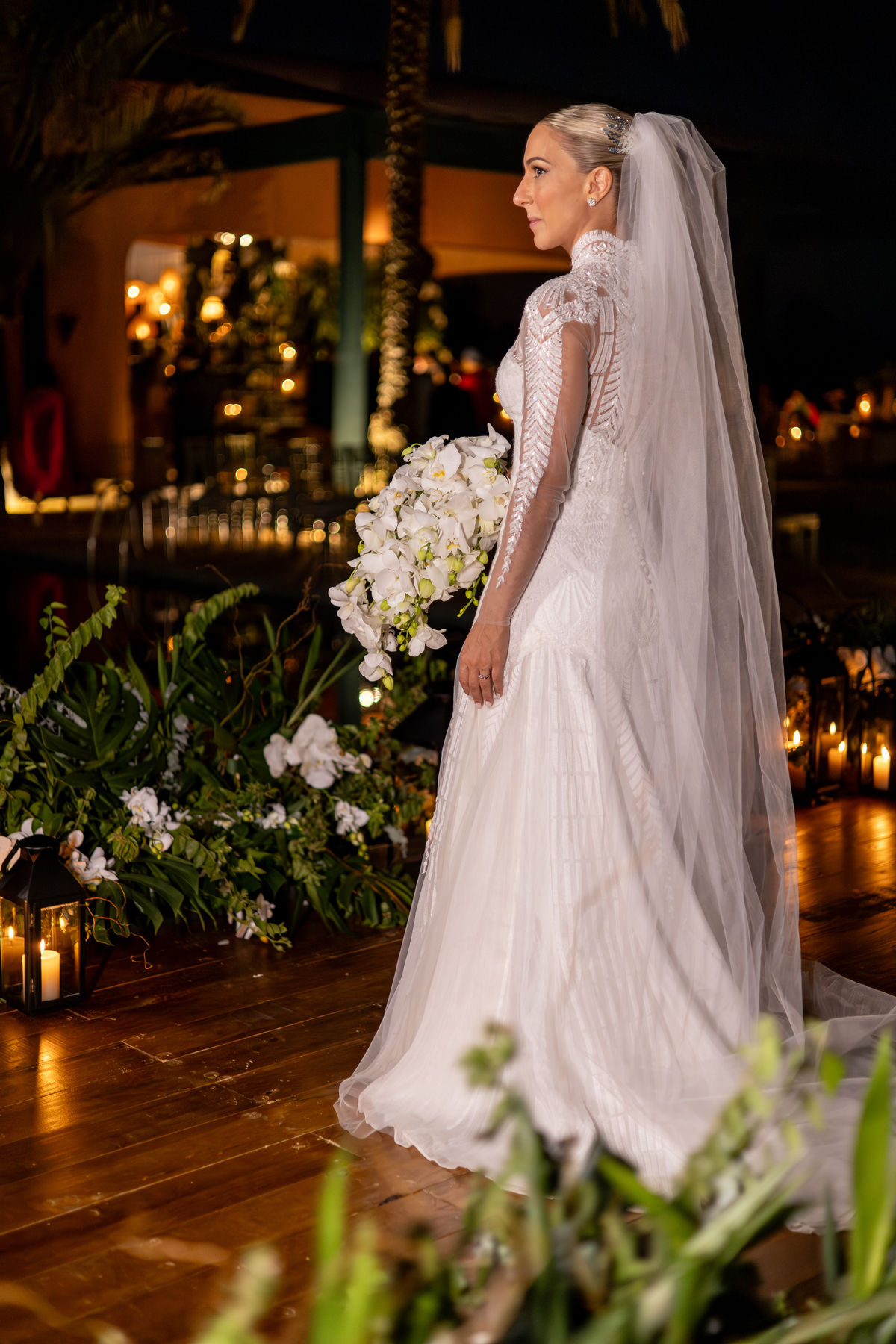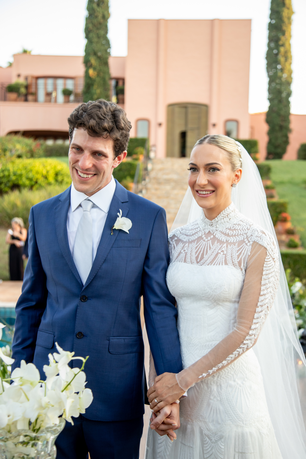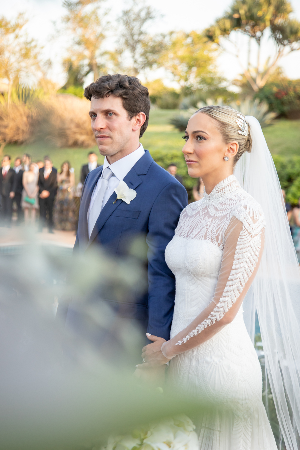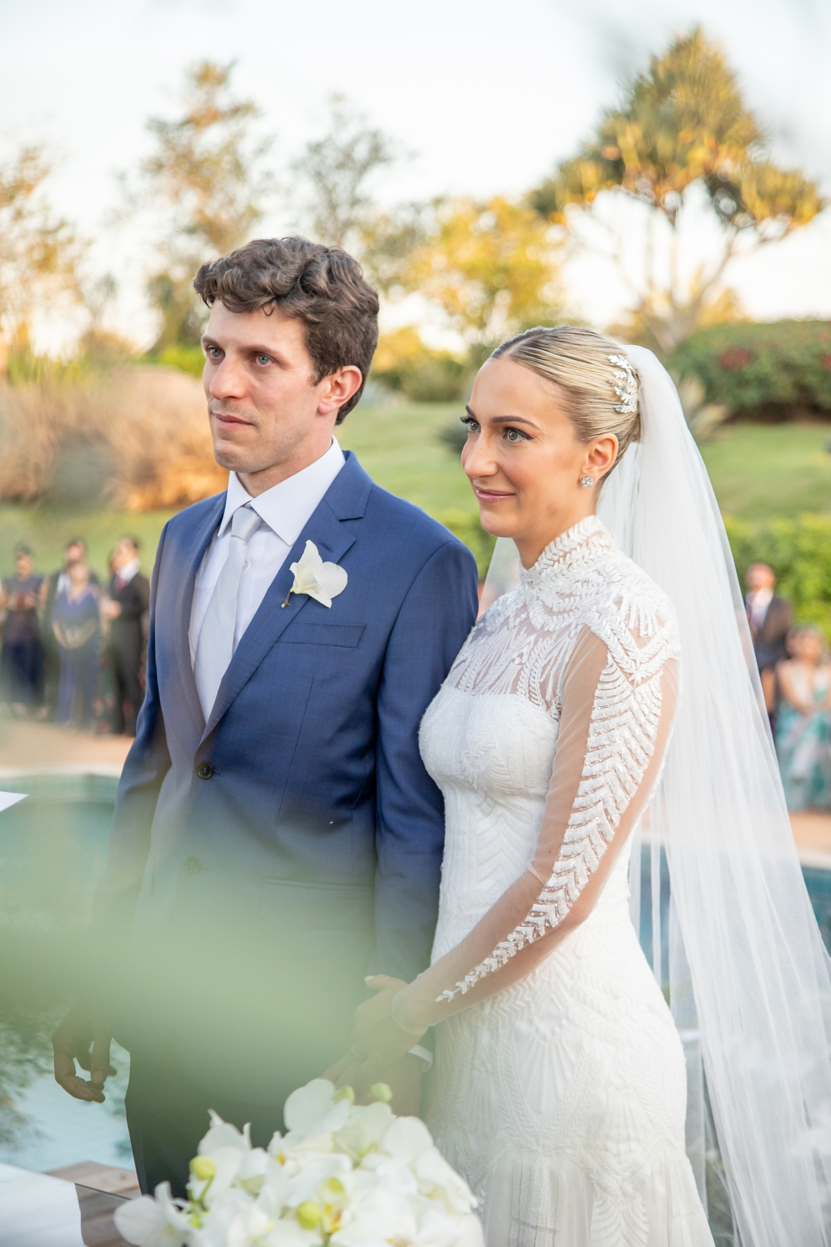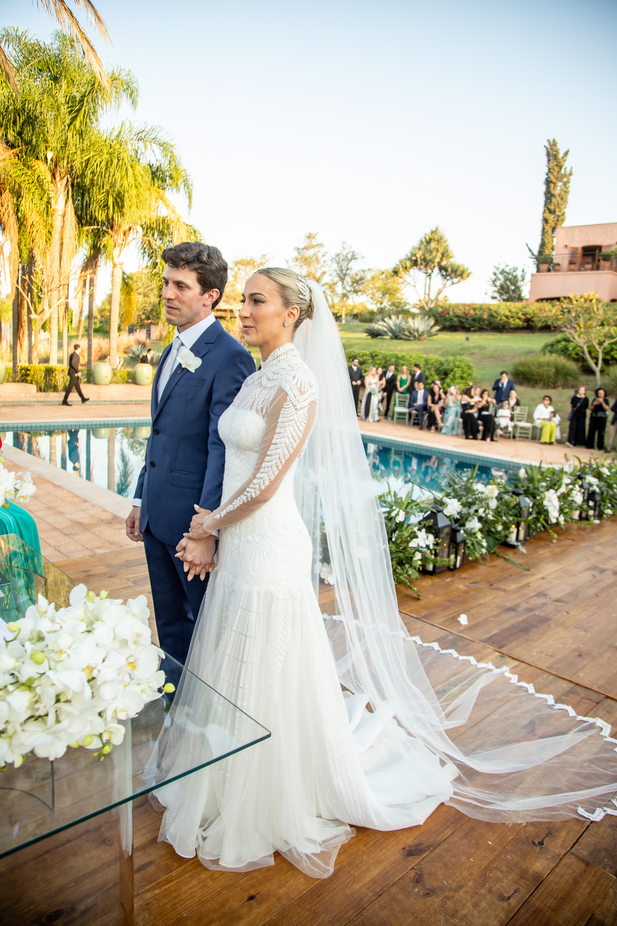 Enquanto o sol lentamente mergulha no horizonte, pintando o céu com tonalidades de laranja, rosa e roxo, Julia caminha em direção ao altar, irradiando uma mistura de nervosismo e felicidade. Rafa, seu sorriso iluminando seu rosto, a espera com olhos cheios de admiração e amor. Amigos e familiares testemunham esse momento especial, cercados pela atmosfera tranquila e serena que só o crepúsculo pode proporcionar.