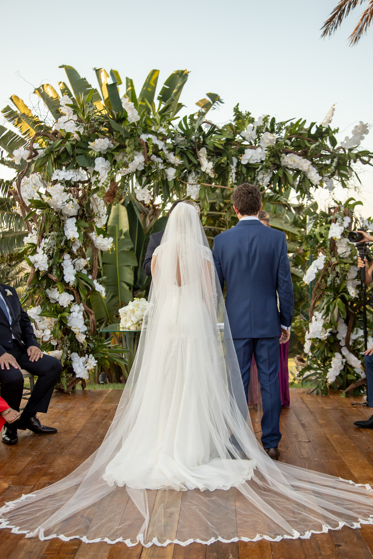 Os votos trocados são mais do que palavras; são promessas feitas sob a majestade do céu poente, promessas de apoio mútuo nos dias ensolarados e nos tempestuosos. Enquanto a cerimônia avança, o céu se transforma gradualmente em um espetáculo de cores intensas, refletindo a intensidade das emoções compartilhadas por Julia e Rafa.
